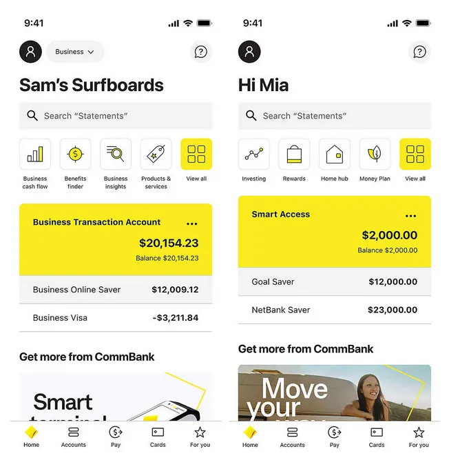 Launch of CommBank app 5.0, offering business customer account switching