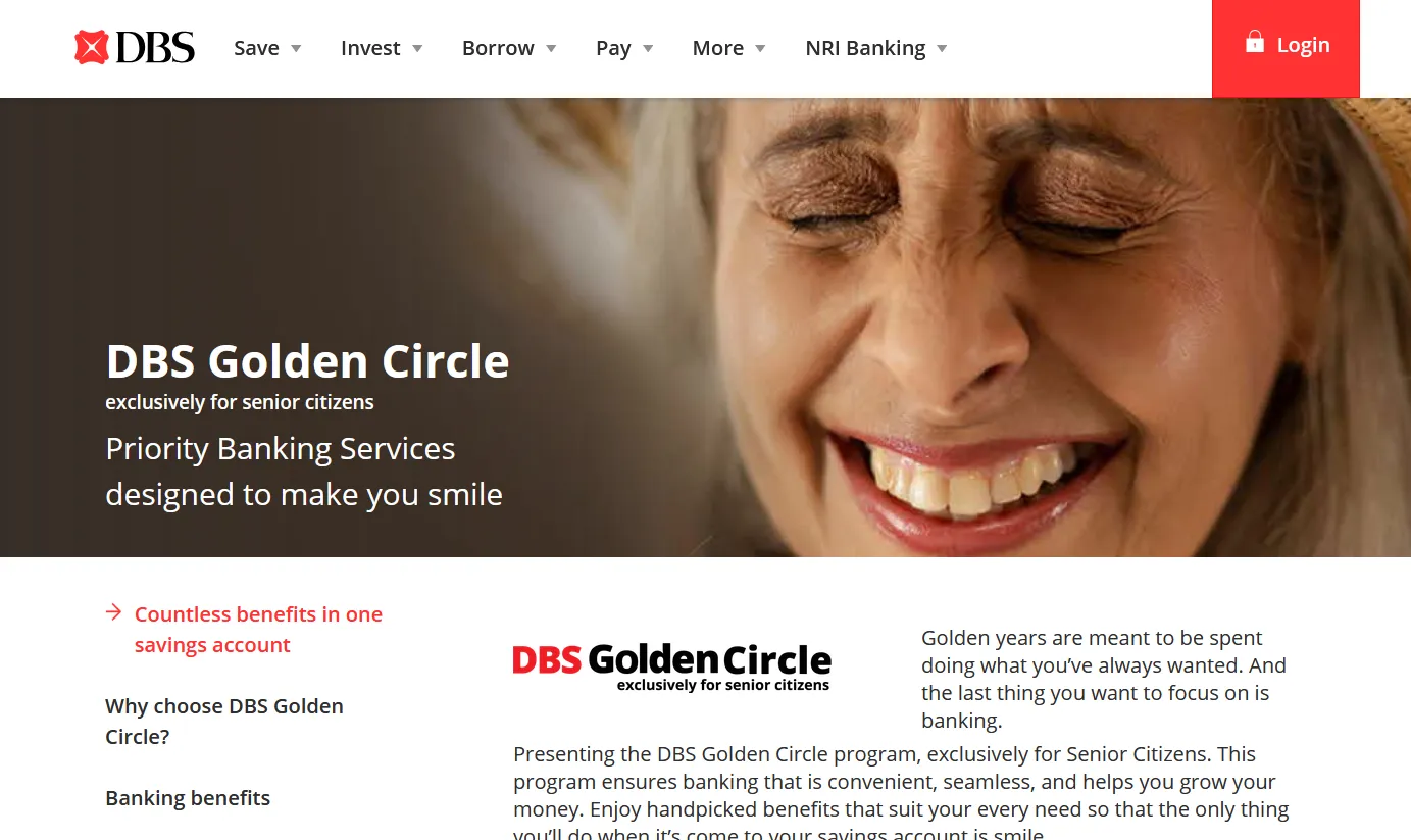 DBS Golden Circle is designed to make banking easier and more convenient for senior citizens, with a focus on trust, safety and convenience. The program offers a suite of exclusive benefits and services, simplifying banking and making it more rewarding for Indian residents aged 60 and above.