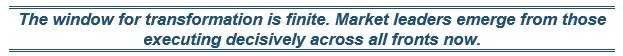 • Talent transformation: Recruit technologists and product managers aggressively. Retrain legacy workforce in digital skills. Accept higher tech compensation.